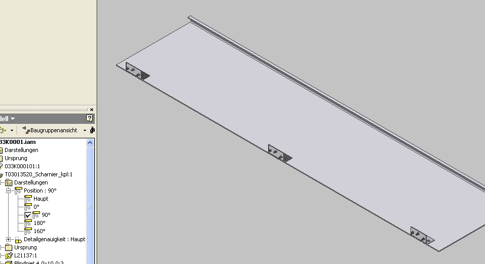 Mahlzeit ! So, die Variante von invhp hat mir sehr weiter geholfen. Aber ...  Annahme: - Scharnier BG mit Pos.darstellung - Scharnier BG wird in neue BG eingebaut in der Nieten und Dichtfolien angebracht werden. Mit invhps Variante überschreibe ich die Pos.darstellung aus der Scharnier BG - Nun möchte ich ein BG zusammenstellen in der ein Deckel und 3 der kompletten Scharniere eingebaut sind. Nun meine Frage... gibt es eine Möglichkeit alle 3 Scharniere gleichzeit bezüglich ihrer Pos.darst. steuern oder muss ich weiterhin im Browser die Pos. einzeln umstellen ?? mfg und thx im vorraus ------------------ He not busy being born is busy dying! Eine Antwort auf diesen Beitrag verfassen (mit Zitat/Zitat des Beitrags) IP |