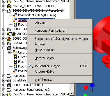 ...man kann: - Baugruppe "zerlegen" mit Hilfe der Befehle Komponente verschieben oder drehen --> geht nicht bei fixierten Teilen - auf die Abhängigkeit des Bauteils einen LMK (linker Mausklick)und schon erröten die Abhängigkeitsflächen der Bauteile - man kann auch "andere Hälfte" und im "Fenster suchen" einsetzen - mit dem "Blitz" --> "alles aktualisieren" wird die BG wieder zusammengefügt HTH