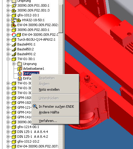 Oh Mann hatte die Falsche Abhängigkeit geknipst. Hier die Richtige. Wenn ich alle untergeordneten reduziere, hab ich ca 1 Bildschirmhöhe. Das ist noch in Ordnung. Zusammen mit dem Filter wird es übersichtlicher. Ich werd mir auch bald einen richtig großen Bildschirm kaufen. Die Anlagenteile sind sehr weitläufig, daher auch die Unübersichtlichkeit. Diese BG ist nur eine einfache Maschine. Ab einer bestimmten Grenze arbeite ich sowiso 2D. Ich versuche diese Grenze durch Hardware weiter nach oben zu setzen. Aber diese Diskussion gabs schon mal... ------------------ Gruß Frovo Eine Antwort auf diesen Beitrag verfassen (mit Zitat/Zitat des Beitrags) IP |