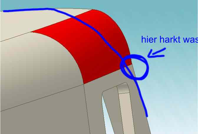 Hallo nightsta1k3r erstmal vielen Dank für Deinen Tipp Zitat: Die Kante der gelben Fläche in den Dachbauteil holen: entweder in eine 3D-Skizze projizieren, oder mit dem Bauteilbefehl "verschieben" als komplette Fläche rüberholen.
