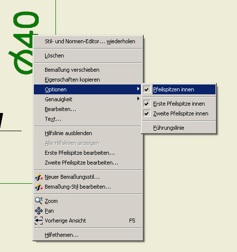 Zitat: Original erstellt von rAist: indem man, NICHT wie im Film gezeigt zunächst VOR der Platzierung rechtsklickt und auf Lineare Durchmesserbemassung klickt und DANACH erst Rechtsklick auf Optionen macht.