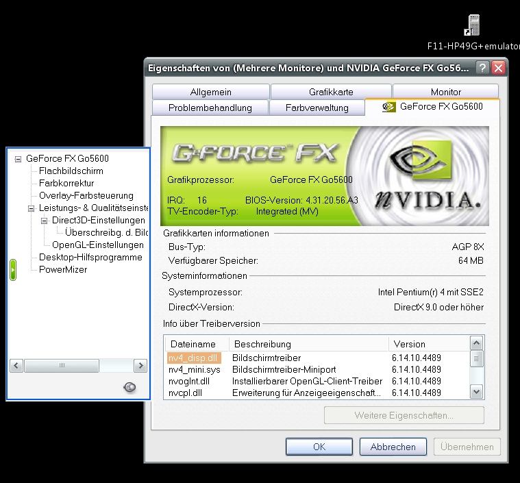 Guten Morgen! Ich habe das gerade mal wie Quickly meinte ausprobiert und bin gleich daran gescheitert einen neuen Treiber für die Grafikkarte zu installieren. Es handelt sich um: NVIDIA GeForce FX Go5600 Auf der NVIDIA-Site ist so auch nichts zu finden. Hat jemand einen Tip wo ich einen aktuelleren Treiber her bekomme? ------------------ Gruß Dirk Im großen Garten der Geometrie kann sich jeder nach seinem Geschmack einen Strauß pflücken. (David Hilbert) Eine Antwort auf diesen Beitrag verfassen (mit Zitat/Zitat des Beitrags) IP |
