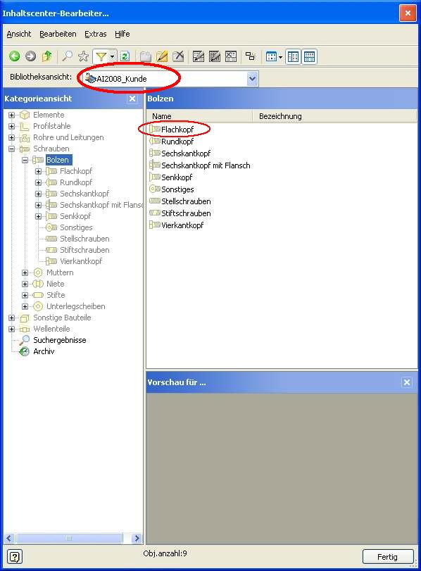 Ja, mit Trennen geht´s, aber dann muß ich ständig umschalten bzw. den User neu einloggen, weil die ADMS Console nur mit Admin-Rechten zugänglich ist. Und über Filter komme ich nicht ans Ziel, da die Kunden-Bibliothek dort nicht geführt wird. EDIT: Über Extras -> Inhaltscenter-Bearbeiter habe ich eine schöne Bibliotheksauswahl, aber das bringt mich beim Platzieren der Teile nicht weiter. ------------------ Gruß, Frank [Diese Nachricht wurde von Arrow am 26. Feb. 2008 editiert.] Eine Antwort auf diesen Beitrag verfassen (mit Zitat/Zitat des Beitrags) IP |