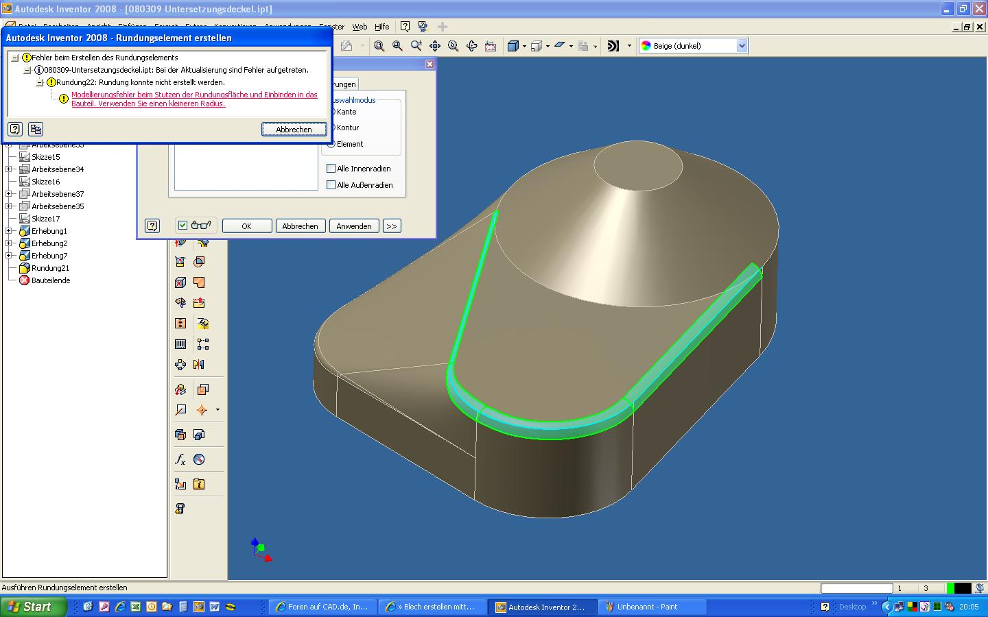Danke für deinen Vorschlag! Aber der Gießer brauch von mir nur die Zeichnung. Mit dem Modell kann er warscheinlich nichts Anfangen. Ich hab jetzt versuchshalber den Kegel etwas schmäler gemacht und dann funktionierts, aber wieso? Eine Antwort auf diesen Beitrag verfassen (mit Zitat/Zitat des Beitrags) IP |