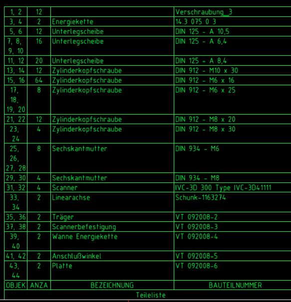 Hallo Wernern, du vermischt in meinen Augen noch Dinge. Dies beides ist eine und das Selbe und heisst Teileliste. Sehr wichtig, nie irgendwas in der Teileliste umbenennen, sondern immer nur in der Stückliste. Was passiert denn wenn du diese löscht und wieder neu erstellst, ist dann der Fehler weg? Mach Mal einen Dopperlklick auf die Teileliste in der idw. Anschliessend RMT auf die Spalte der Anzahl. Dann Sag mal was da drinnen steht im Raider Eigenschaft und im Raider Ersetzen ob da ein Haken bei Wert ersetzen drin ist? Was mir noch sehr komisch vorkommt, warum gibt es in der Objektspalte Einträge mit , und zwei Ziffern? Herzliche Grüsse Sascha Fleischer [Diese Nachricht wurde von freierfall am 14. Sep. 2008 editiert.] Eine Antwort auf diesen Beitrag verfassen (mit Zitat/Zitat des Beitrags) IP |
