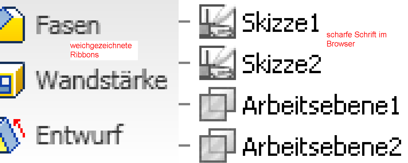 Ist den nur die Schrift in der Ribbonleiste so Schwammig oder auch die der Befehlsfenster wenn die Ribbons an sind.