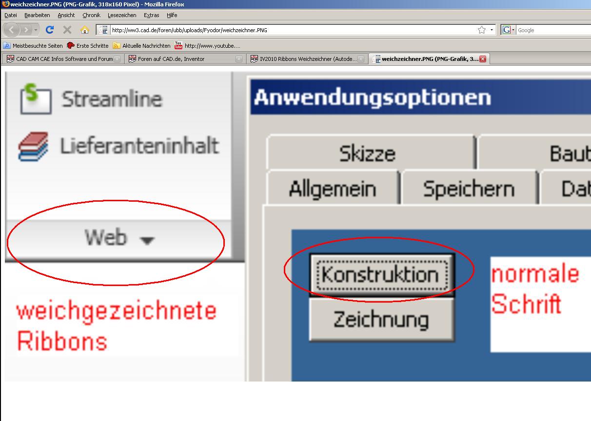 AntiAlias ist auf "Anwendung" gestellt, so wie immer. Am Bildschirm kann es nicht liegen, und an der Grafikkarte auch nicht. Denn auf dem selben Bildschirm werden gleichzeitig korrekt scharf aufgelöste Schriften dargestellt, sogar innerhalb des selben Programms (sie Screenshot). Es sind nur die Ribbons, und die Optionsfelder in Inventor, und nur solange die Ribbons angeschaltet sind. Schalte ich sie ab, sind auch die Fenster wieder normal. Ich habe in der Student-community (habe noch einen Zugang) auch mal die Frage gestellt. Mal sehen ob dort jemand was weiß. ------------------ Cheers, Jochen Eine Antwort auf diesen Beitrag verfassen (mit Zitat/Zitat des Beitrags) IP |