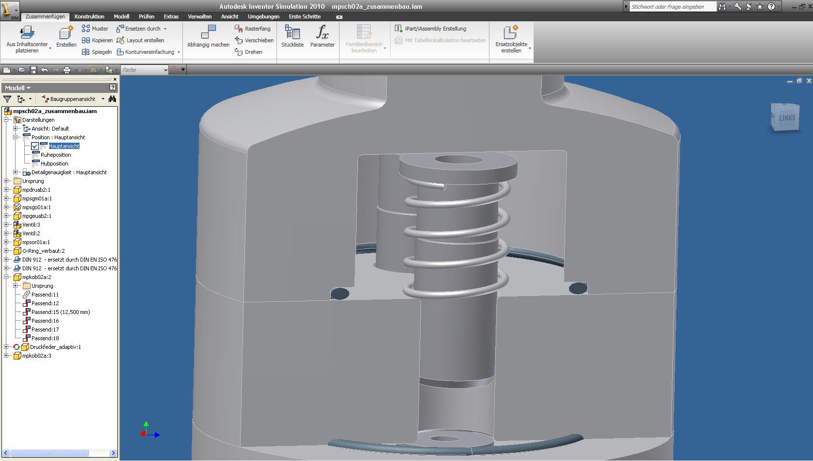 Die ist auch nicht zum Sehen, sondern nur zum Entwerfen. In der Entwurfphase kann man sich durch richtig eingesetzte Adaptivität Sachen bequem passend zurechtziehen. Aber wenn man am Ziel ist, muß sie abgedreht werden. Ansonsten Kopfschmerzen  . In deinem Fall: modelliere zwei Federn, baue beide ein, baue den Kolben (und eventuelles Zubehör) zweimal ein und setze die jeweils zweite Einfügung in den Exemplareigenschaften auf "Referenz" (=Umgebung, die in der StüLi nicht mitgezählt und in der Zeichnung nach belieben sichtbar oder gestrichelt oder unsichtbar ist) .