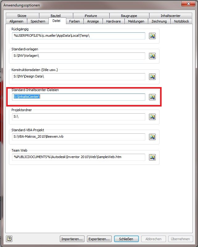 Dafür gehst du in die Projektverwaltung und klickst auf den Knopf "Inhaltscenter-Bibliothek konfigurieren"