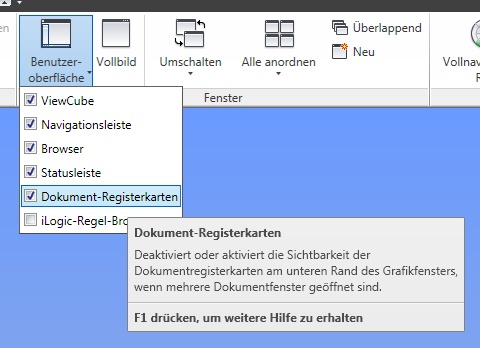 Hallo, kann mir jemand sagen wo beim 2011 die untere Statusleiste so eingestellt werden kann daß wie bei 2010 die geöffneten Dokumente angezeigt werden so daß man schnell vom einen ins andere Fenster wechseln kann? Werner Geistl Sorry, habs gefunden denn ich war noch in der klassischen Oberfläche. Ist ja auch kein Wunder wenn man je nach Kunde am Tag ein paar mal die Inventor-Version wechseln muss! Werner ------------------ Als das Teleklingelfonte Treppte ich die Rannte hinunter und Türte gegen die Bums GEIKON GmbH Werner Geistl  [Diese Nachricht wurde von Geistl am 08. Mai. 2010 editiert.] Eine Antwort auf diesen Beitrag verfassen (mit Zitat/Zitat des Beitrags) IP |