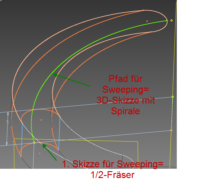 Hallo, ich habe einfach mal geraten, dass der Auslauf ebenso gekrümmt sein soll wie das Langloch selbst. Dass lässt sich als "Spirale" realisieren. (In Wirklichkeit ist es natürlich keine Spirale, sondern eine Wendel oder Helix). Ulrich Eine Antwort auf diesen Beitrag verfassen (mit Zitat/Zitat des Beitrags) IP |