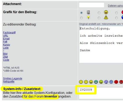 Hallo Andreas, die geänderte Systeminfo gilt dann nicht für Foren in denen man bereits Beiträge geschrieben hat, sondern wird nur in Foren, in denen man bisher noch keinen Beitrag erstellt hat, als Vorlage für die Systeminfo verwendet. Es sei denn, man aktiviert die Option "Diese Systeminfo gilt ab sofort für alle Foren.", dann wird diese Vorlage auf alle Foren übertragen, in denen man bereits Beiträge verfasst hat. ------------------ Michael Puschner Autodesk Inventor Certified Expert Mensch und Maschine Scholle GmbH Eine Antwort auf diesen Beitrag verfassen (mit Zitat/Zitat des Beitrags) IP |