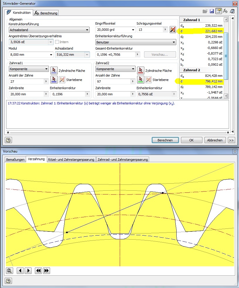 Die Werte für das Zahnrad sind dann nicht so wie es lt. Vorgaben sein müßte.