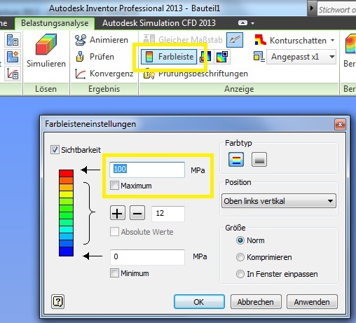 Ist aber eigentlich gut zu finden: Menügruppe "Anzeige" / Befehl "Farbleiste" Ansonsten kann ich Leo nur zustimmmen: Hat man unrealistische singuläre Spannungen, sollte man dafür sorgen, dass diese nicht mehr auftreten. ------------------ Michael Puschner Autodesk Inventor Certified Expert Mensch und Maschine Scholle GmbH Eine Antwort auf diesen Beitrag verfassen (mit Zitat/Zitat des Beitrags) IP |