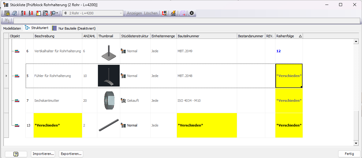 Ich wüßte nicht wie man das abgleichen soll. Spätestens wenn 2 Bauteile über die Bauteilnummer in eine Stücklistenzeile zusammengefasst werden