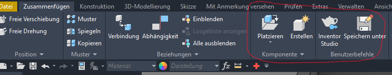Guten Morgen, wir haben auf zwei neuen Rechner Inventor Prof 2026 installiert und eingerichtet. Jetzt wollte ich die Multifunktionsleiste in einer Baugruppe anpassen. Ich möchte den Befehl "Ersetzen" dauerhaft in der Hauptgruppe haben und "Erstellen" in die erweiterten Bereich verschieben. Mit Rechtsklick kann ich die Befehle umsetzen was auch funktioniert, siehe angehängtes Bild. Wenn ich Inventor komplett schließe und neu öffne sind die Befehle wieder in der ursprünglichen Anordnung und nicht so wie ich es gern habe. Inventor speichert mir die neue Anordnung nicht. In allen Vorgängerversionen hatte ich das Problem nie und ich weiß nicht woran es liegen könnte. Wenn ich die ganze Gruppe nach rechts oder links verschiebe, Benutzerbefehle hinzufüge etc. klappt alles und ist auch nach einem Neustart genau da wo es sein soll. Hat mir jemand ein Tipp woran das liegt? Vielen Dank und schönen Dienstag.  Eine Antwort auf diesen Beitrag verfassen (mit Zitat/Zitat des Beitrags) IP |