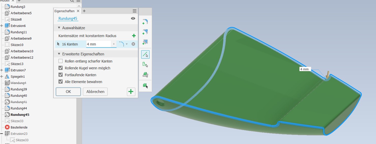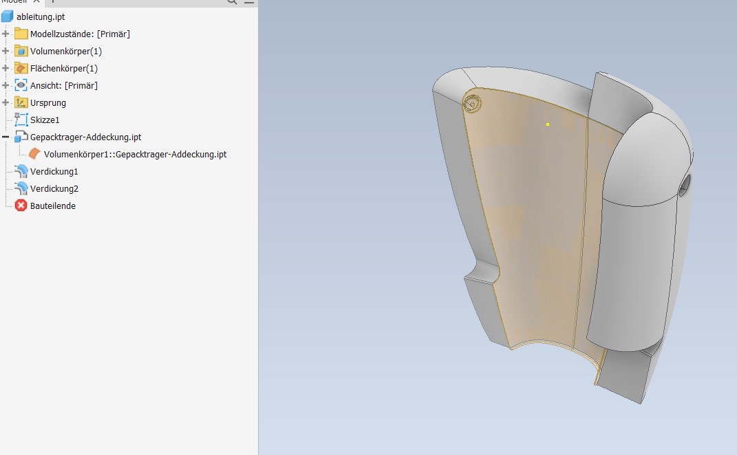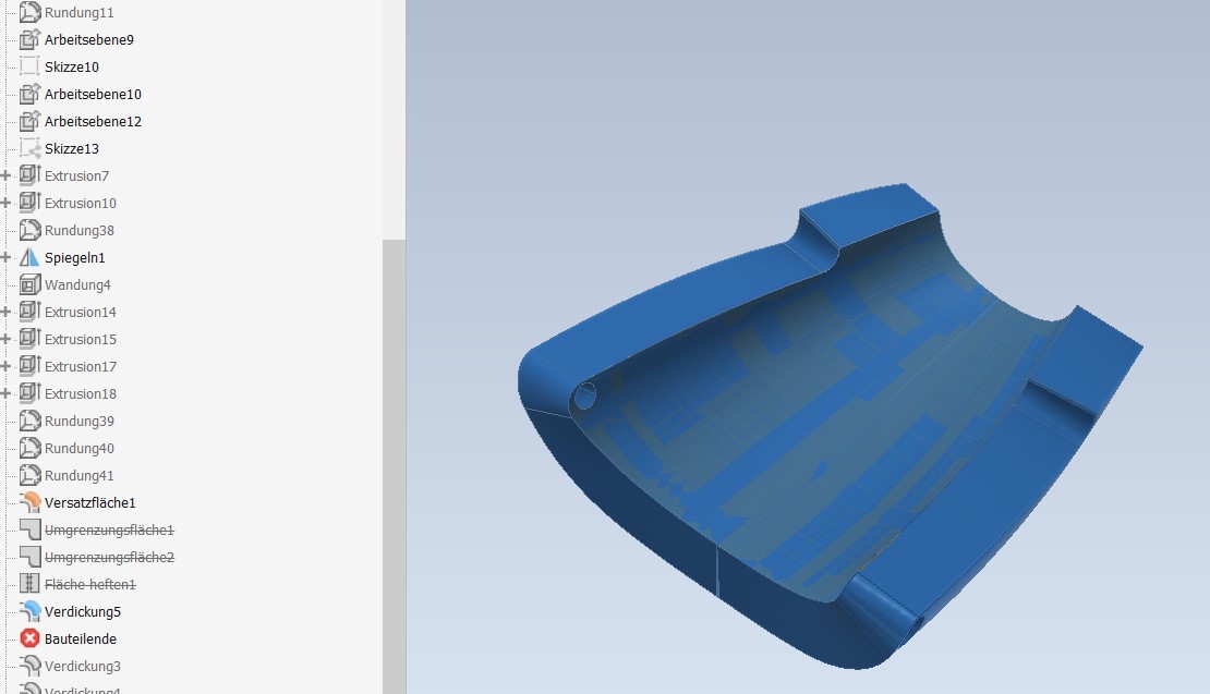 Hallo Roland, daß mit der Verdickung von Roger ist ja schon nicht schlecht. Wie müßte das aber mit einer Ableitung aussehen, ich möchte das auch noch ansehen können. Ich habe ja die Bauteil Abdeckung als IV2022 schon im Eröffnungsbeitrag von mir hier hochgeladen, selbst wenn ich ein Bild mit einer nachfolgenden IV Version hätte wo man was aus dem Modelbrowser sehen könnte, in welcher Reihenfolge das erstellt wurde, dann könnte ich das vielleicht auch mal ausprobieren! Wäre schön wenn Du mir das mal aufzeigen könntest! Gruß Mike Eine Antwort auf diesen Beitrag verfassen (mit Zitat/Zitat des Beitrags) IP |