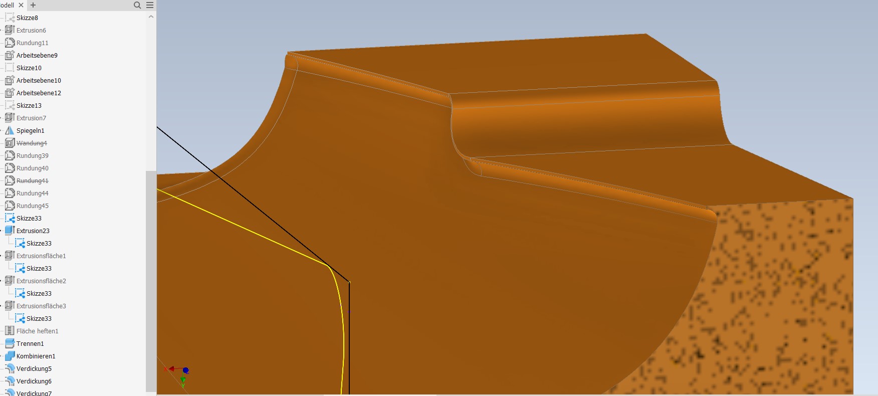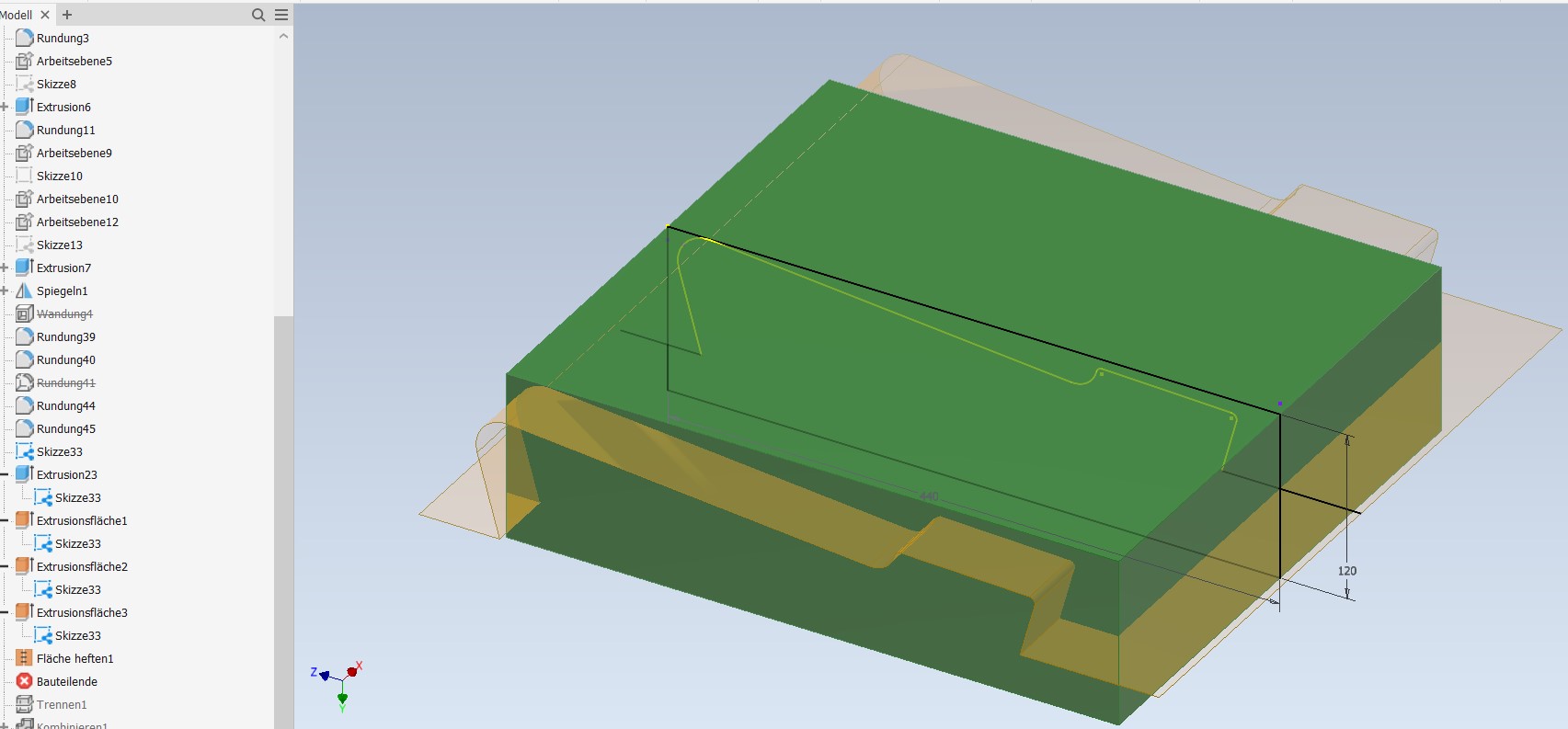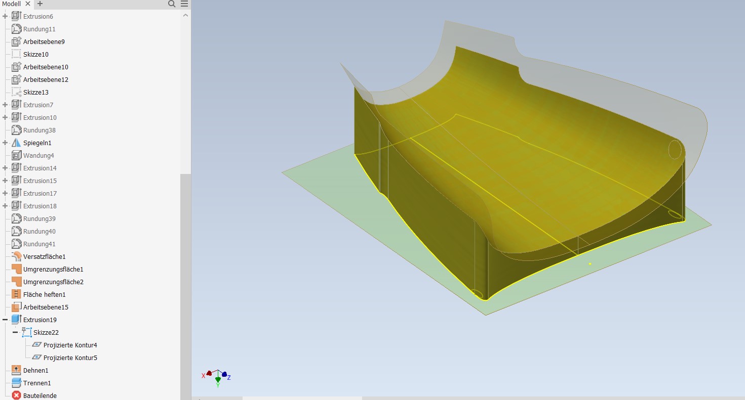 Hallo, als wie ich das mit den Inventor Versionen haße. @Tlipo, schade, daß Du Dir die Datei nicht angeschaut hast. An die Lösung wie Du sie vorgeschlagen hast hatte ich auch schon gedacht und da hat nichts fonktioniert. @rode.damode, die versetzte Versatzfläche bekomme ich ja noch hin, aber die Umgrenzungsfläche 1 und 2 wie sie in der Browserleiste Deines Bildes zu sehen ist versteh ich schon nicht mehr. Eine Antwort auf diesen Beitrag verfassen (mit Zitat/Zitat des Beitrags) IP |