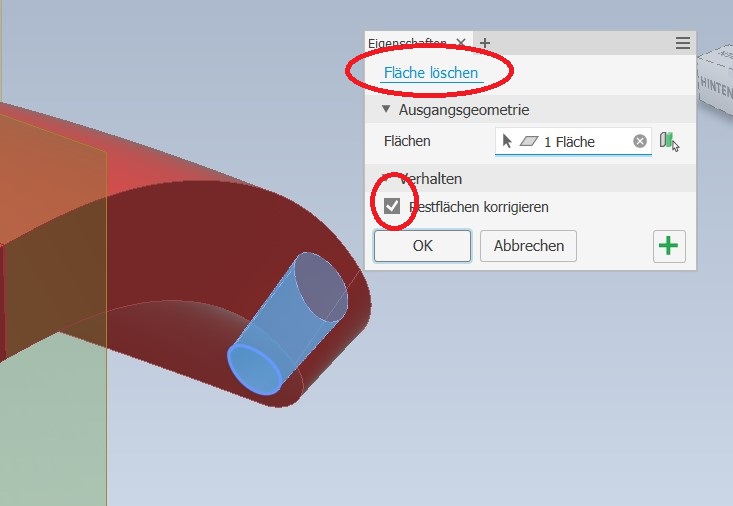 Damit habe ich nur die 2 Löcher in der Versatzfläche geschlossen. Die Fläche zum Schneiden muss dicht sein. Einfach Befehl starten, Kante der Bohrung anklicken und fertig. Dann aber die 3 Flächen zusammenheften zu einer Fläche. Diese bei Bedarf auch noch dehnen. Hier den Befehl starten und dann alle Teilstücke der Kante der Versatzfläche anklicken. Viele Grüße Roger Eine Antwort auf diesen Beitrag verfassen (mit Zitat/Zitat des Beitrags) IP |