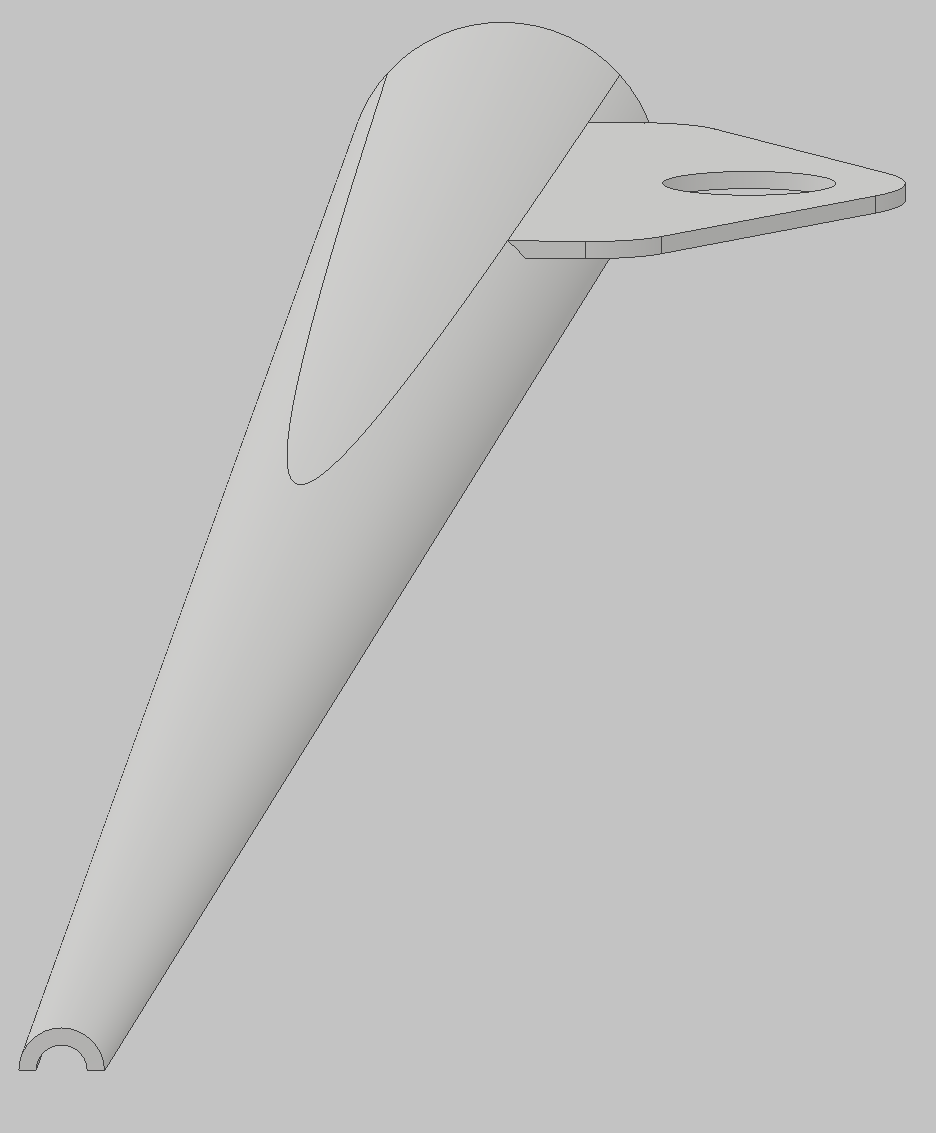 Falsch ist nur die Erwartung, dass das Teil abwickelbar wäre. Der exzentrische Schnitt der ebenen "Ohren" mit dem Kegel ist keine Gerade, sondern - in der begrenzten Länge unmerklich - eine Hyperbel. Bei größerer Länge ist es besser zu erkennen (Bild). In der Realität ist so eine nur wenig krumme Biegung natürlich trotzdem möglich. Um dafür eine Zuschnitt-Zeichnung zu erhalten, würde ich den Kegel allein entfalten und die Ohren mit einem Zuschlag (und kleinen Kerben zur Kennzeichnung) für die Biegung im ebenen Zustand dazu modellieren. ------------------ Roland www.Das-Entwicklungsbuero.de It's not the hammer - it's the way you hit! Eine Antwort auf diesen Beitrag verfassen (mit Zitat/Zitat des Beitrags) IP |