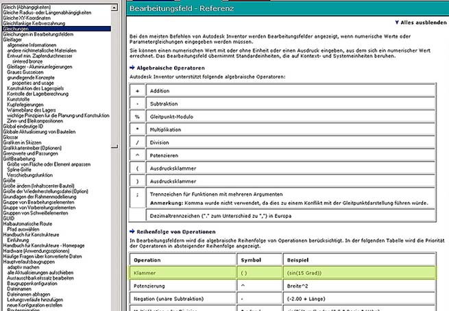 Hallo Forum, Habe in Mathe wohl nicht gut aufgepasst! Wie ist die Definition für: „Ausdrucksklammer“ bei den Algebraischen Operatoren? Und: Welche Bedeutung hat sie bei der Programmierung von Gleichungen in den Modellparametern. Was bedeutet z.B.: (sin(15grad)) Danke und Grüße aus Hannover Micha