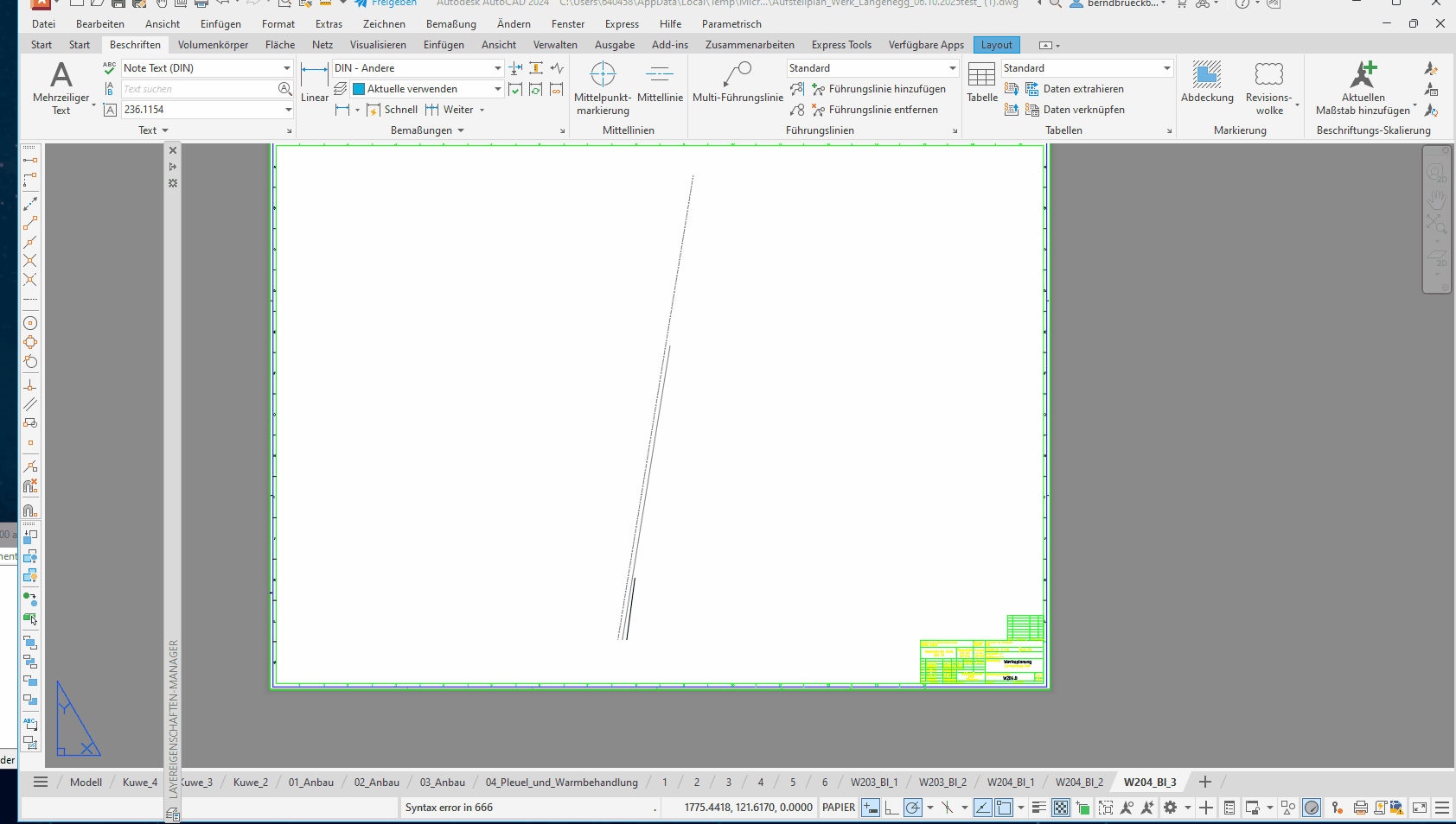 Hallo zusammen, ich nutze den AUTOCAD LT 2025 eigentlich nur zum Drucken von bereits eingestellten Blattbereichen. Das heißt ich kenne mich nicht wirklich damit aus. Leider habe ich jetzt ein Blatt das vorher den gesamten Hallenlayout in 1:150 darstellte nun nur ein kleines Bereich anzeigt. Ich habe noch andere Blätter mit 1:100 oder andere die passen aber das Blatt mit 1:150 zeigt nur ein kleines Bereich des Hallenlayouts. Wie kann ich das nun zurückändern, so dass die gesamte Modellbereich in Maßstab 1:150 auf diesem Blatt wieder angezeigt wird. Besten Dank für Unterstützung
