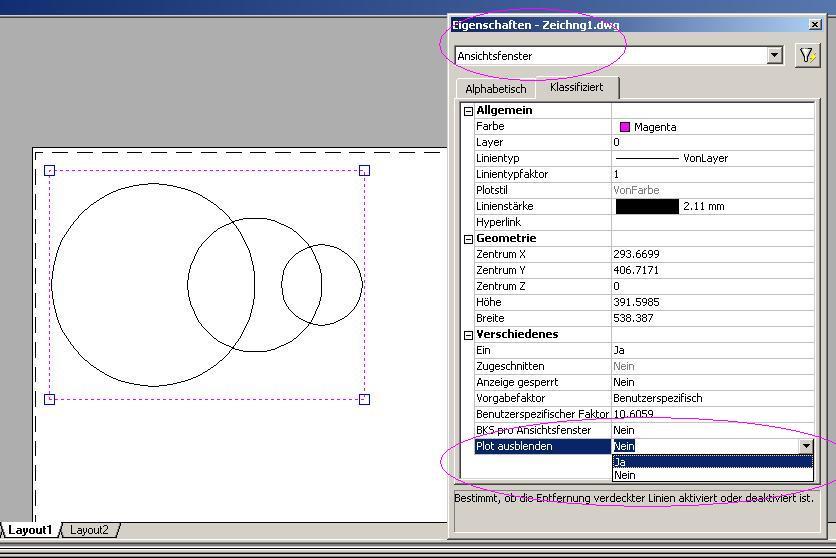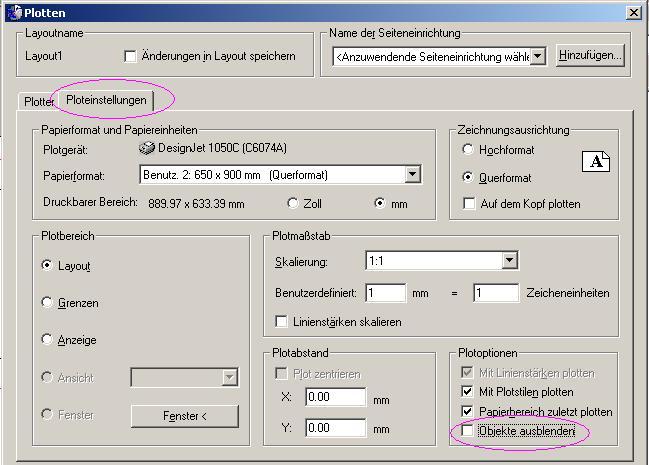 Also beim Ansichtsfenster/Eigenschaften unter "Verschiedenes" und der Eintrag nennt sich "Plot ausblenden" Ja/Nein... Im Plotdialog: Reiter "Ploteinstellungen"/Plotoptionen(u.rechts) = "Objekte ausblenden" ------------------ - Sebastian Mattis - Eine Antwort auf diesen Beitrag verfassen (mit Zitat/Zitat des Beitrags) IP |