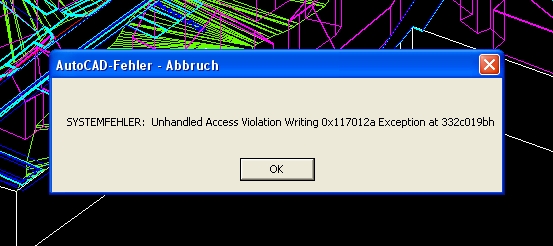 Hi, kannst Du den Systemfehler mal genauer spezifizieren? Man braucht schon die genaue Fehlermeldung um Rückschlüsse ziehen zu können. Vielleicht meinst Du nur, daß es an zoom und pan liegt und Du hast statt dessen vielleicht eine ramponierte Zeichnungsdatenbank und deswegen schmiert die Kiste ab.... Also bitte Screenshot der Fehlermeldung oder den geneuaen Text posten! Gruß Angelika ------------------ Lieber Fehler riskieren als Initiative verhindern. (Reinhard Mohn)