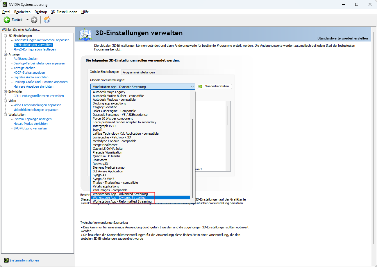 Hallo cadkaiser Besten Dank für den Tipp. HP hat manchmal so seine Eigenheiten... Ich habe jetzt testweise auf Höchstleistung umgestellt. In der Nvidia Systemsteuerung gibt es 3 solcher Profile. Welches soll ich da nehmen? Es war "Grundprofil" aktiv. Die Leistung meiner Quadro® P2200 ist eher bescheiden. Dafür ist sie aber super leise. Die ganze Workstation ist eigentlich super leise. mfg neo Eine Antwort auf diesen Beitrag verfassen (mit Zitat/Zitat des Beitrags) IP |