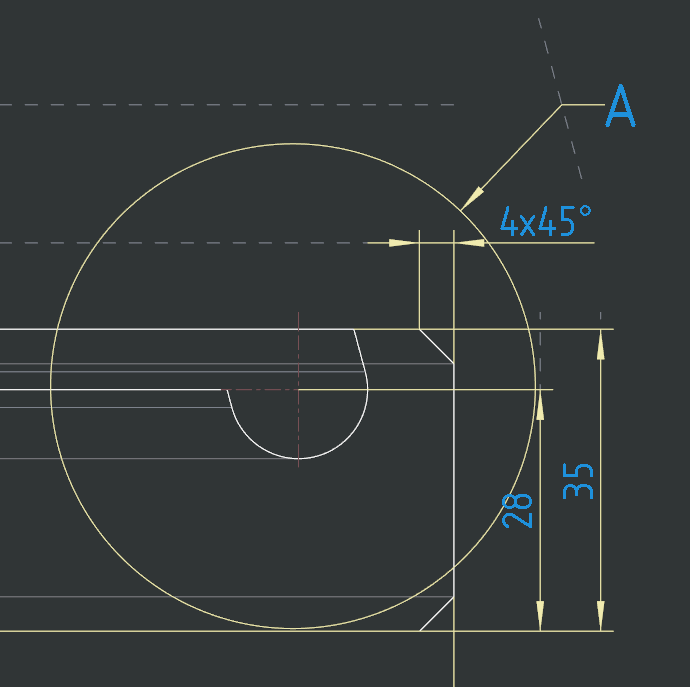 Jetzt habe ich aber das Problem, dass wenn die Geometrie relativ klein ist und am Rand des Bauteils liegt, dass der Detailkreis mitten in meinen Maßen liegt --> Manuelles anpassen nötig.