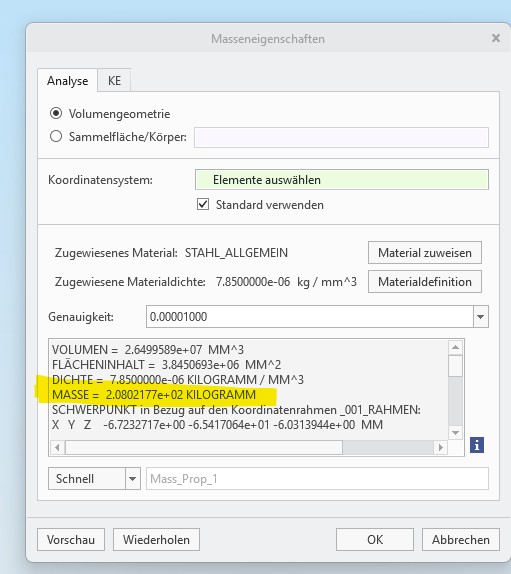 die Masseneigenschaften werden immer in den Einheiten angezeigt, auf die das Modell in den Modelleigenschaften eingestellt ist. Das lässt sich auch nicht ändern.