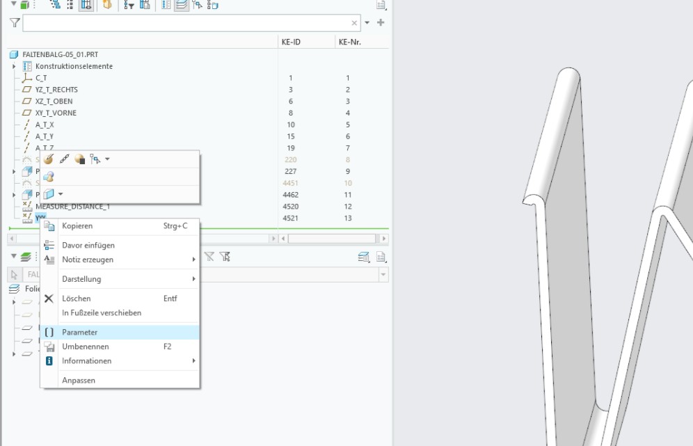 Hallo, hat funktioniert! Danke. War es bei dir gleich, dass die Distanz nicht gleich im Parametermenü zu sehen war? Ich musste zuerst das Messen-KE mit Rechtsklick wählen, dann auf Parameter klicken und dann hat er mir das KE im Parametermenü gezeigt. Ohne diesen Schritt war im KE Teil vom Parametermenü nichts hinterlegt. Gruß, Anton Eine Antwort auf diesen Beitrag verfassen (mit Zitat/Zitat des Beitrags) IP |