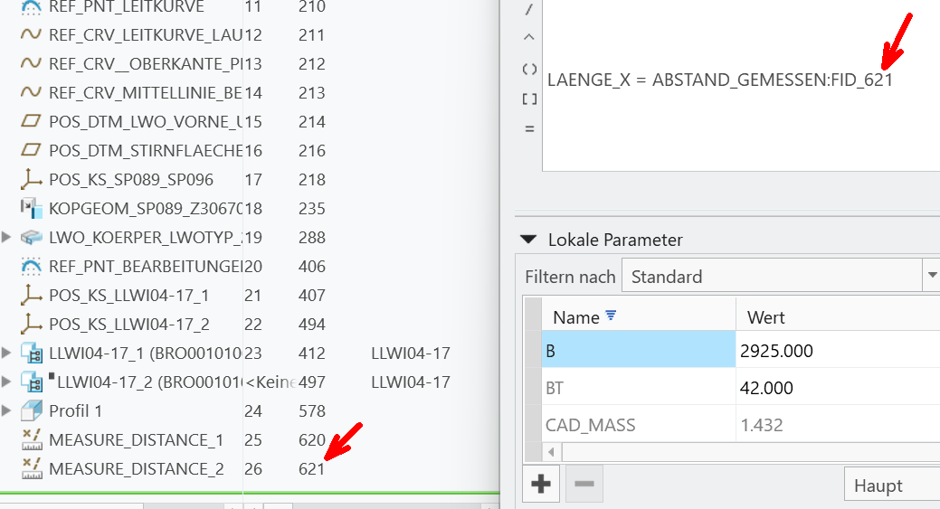 In den Beziehungen musst Du die Feature-ID hinter den Parameter hängen, um ihn weiter zu verwenden. Beim Auswählen aus Liste wird die FID automatisch mit angehängt.